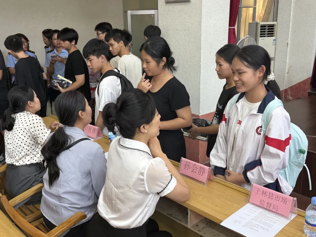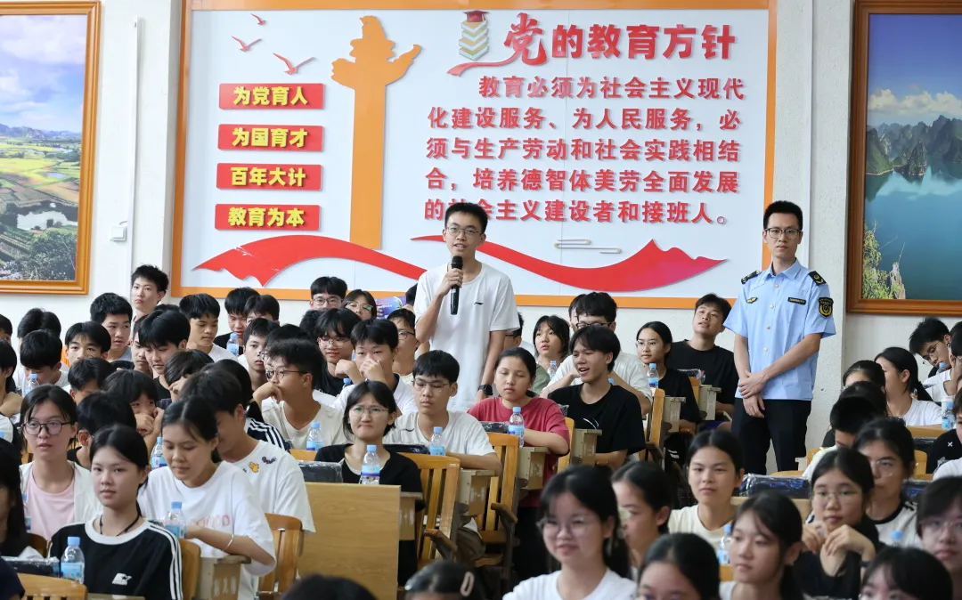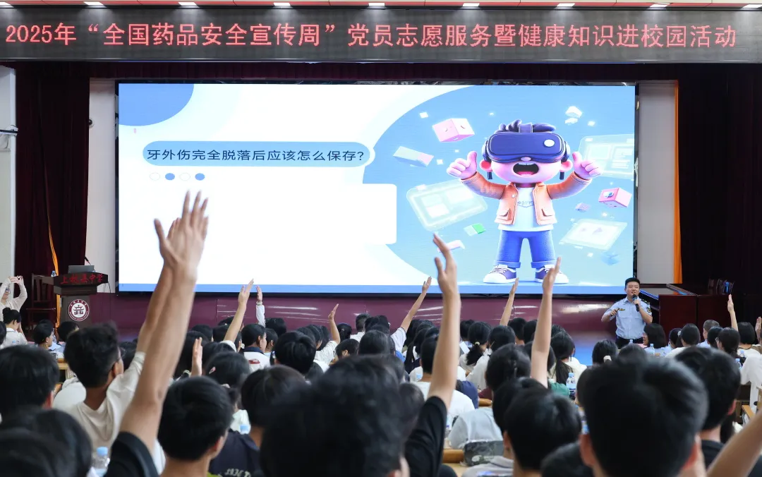 “抢答!保健食品不能代替药品!”9月5日的上林县中学校园内,此起彼伏的抢答声与掌声交织,一场别开生面的“全国药品安全宣传周”党员志愿服务活动正在火热进行。来自广西药品不良反应监测中心、南宁市及上林县市场监管局、卫健局的党员志愿者,携手自治区人民医院、广西医科大学附属医院专家,为近300名师生带来了一堂“干货满满”的健康知识盛宴。